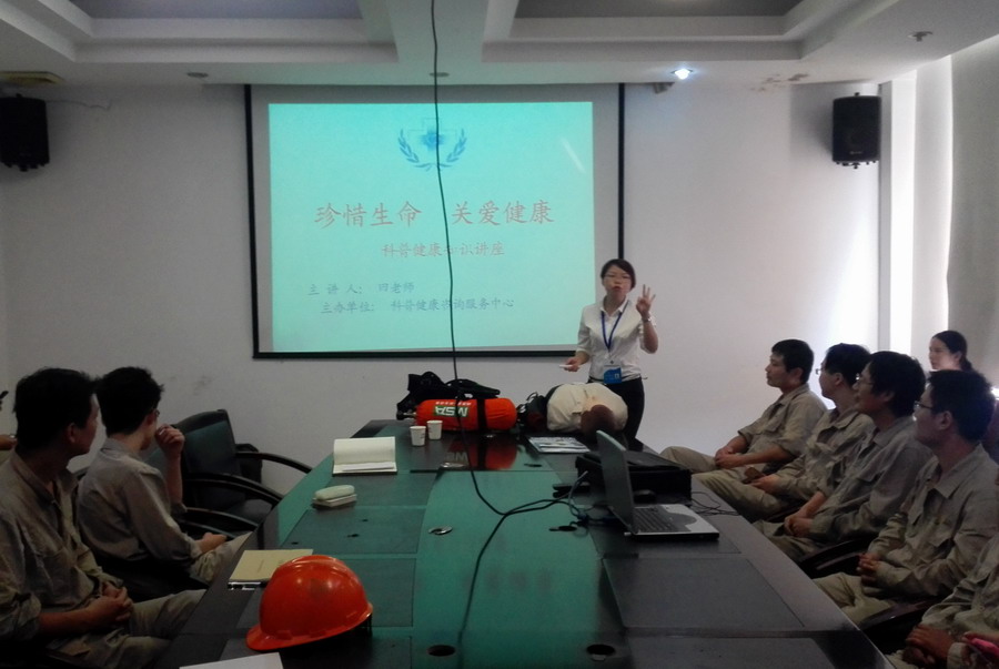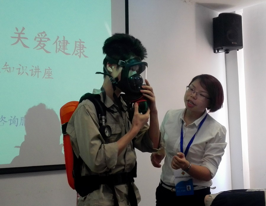 培训课上,田老师结合丰富的案例,针对空气呼吸器使用规范及操作技能、CPR紧急救护知识(人工呼吸、心肺复苏,如溺水、触电等紧急突发事故的应急处理)、职业病防治、职场人员健康状态的综合治理和人体穴位保健知识、以及心理健康等方面的知识进行了详细讲解,同时对空气呼吸器使用、心肺复苏、人工呼吸、穴位辨识与按摩、日常保健等内容进行了现场演示。