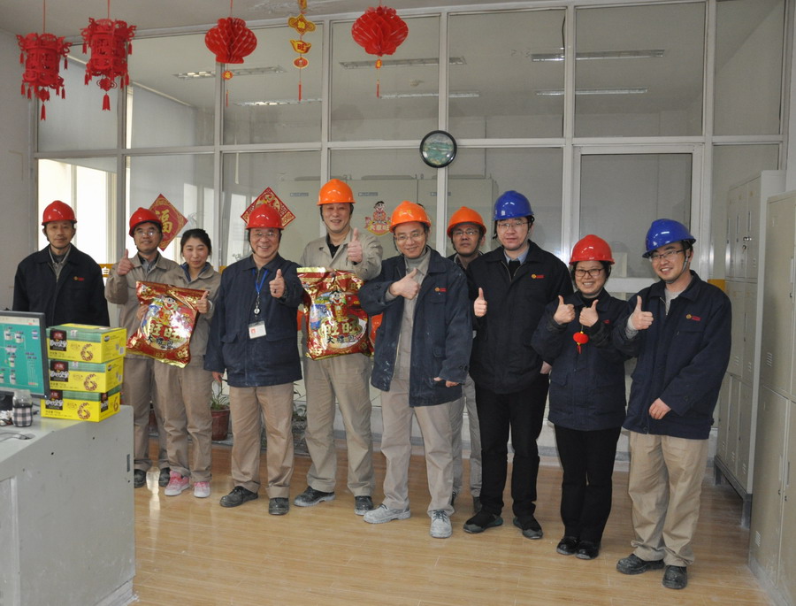 在举家团圆的新春佳节,南京钛白公司许多员工仍坚守岗位,默默奉献在自己的工作岗位上。2月16日大年初一早上,南钛公司处处洋溢着欢乐祥和的节日气氛。南钛公司总经理殷红忠带领各部门值班干部深入生产现场,向主动放弃与家人团聚机会、坚守工作岗位的员工们致以新春的祝福和美好的祝愿。