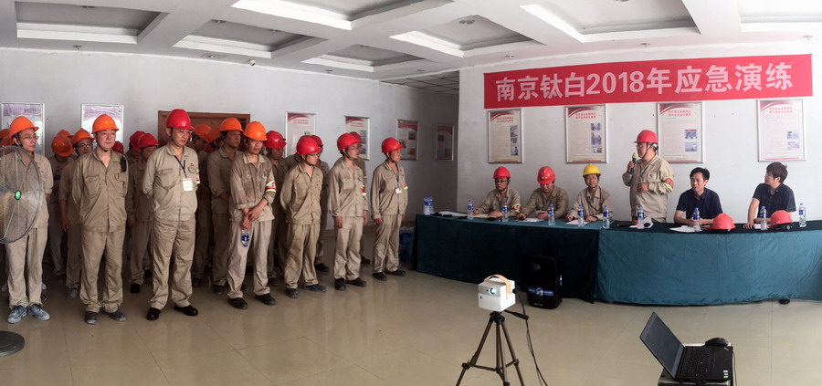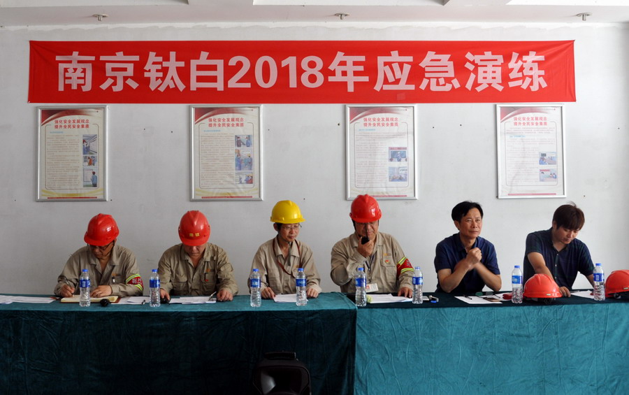 7月10日上午9:30,南京钛白公司2018年应急综合演练如期举行。南京市江北新区安监局领导莅临现场观摩、指导。
