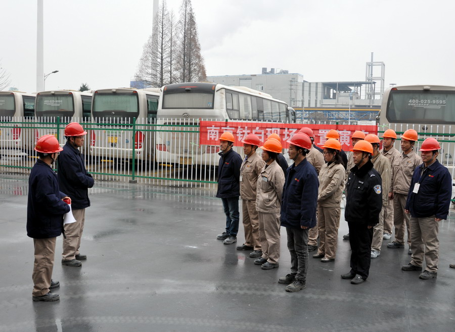 为进一步增强广大员工应急防范意识和应急处置能力,2018年12月25日,南京钛白公司组织开展车辆伤害现场处置应急演练活动,公司副总经理、安全总监姜明进行演练动员。