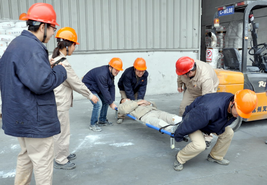 本次演练,模拟物流中心成品库叉车司机在装卸货物过程中致人碰伤倒地,现场作业监护人发现后立即紧急叫停所有装卸作业,并迅速向部门领导报告;物流中心主任立刻赶到现场查看员工伤情、安抚受伤员工、维持现场秩序;公司应急救援小组随即赶到事发现场,进行警戒疏散,并迅速采取有效措施组织抢救,直至将伤者送往医院救治,演练取得了预期效果。