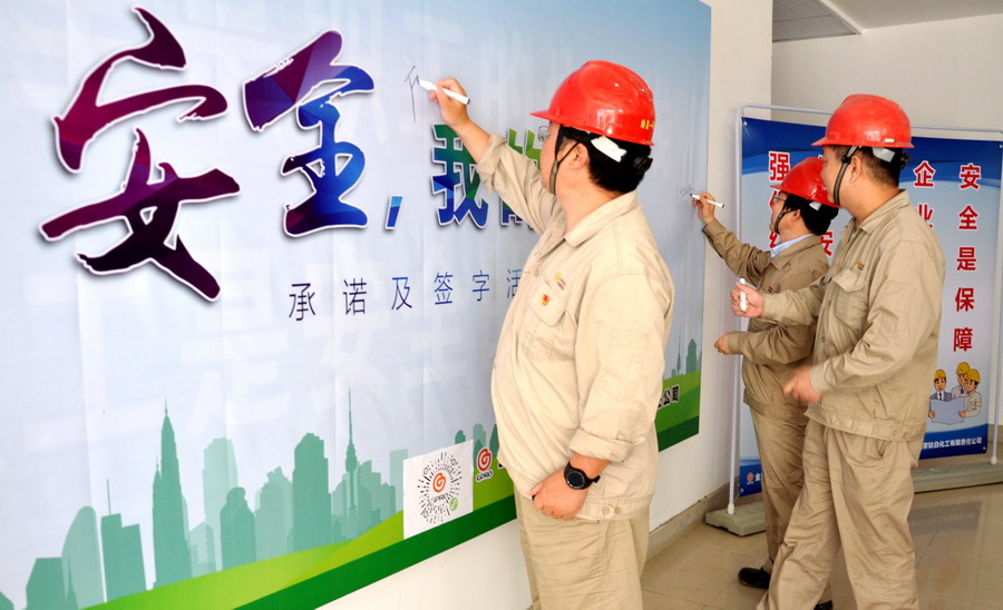 启动仪式由公司安全总监姜明主持,总经理殷红忠做总动员。在启动仪式现场,举行了“安全,我的责任”承诺及签名活动,全体到场人员在安全总监姜总的引领下,庄严宣誓:安全,从我做起,做到“四不伤害”,不伤害自己,不伤害他人,不被他人伤害,保护他人不受伤害。铿锵有力的誓言,掷地有声的承诺,诠释着履职尽责的担当。