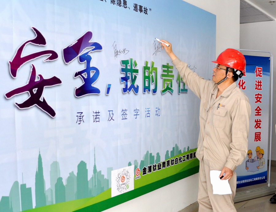 5月31日上午9:30,南京钛白公司2019年“安全月”活动在调度楼一楼大厅正式启动,公司总经理、安全总监、安委会成员,以及各部门车间、常驻承包商单位代表近80人参加启动仪式。