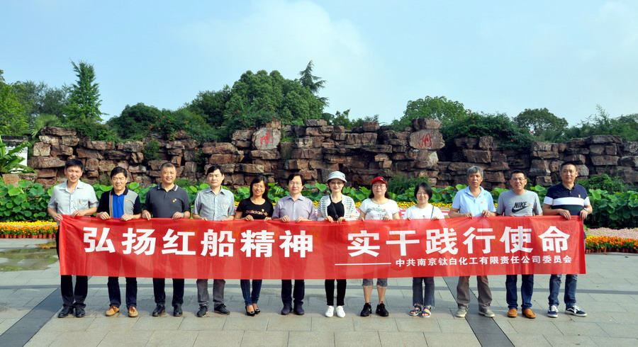 为认真学习贯彻习近平新时代中国特色社会主义思想,继承和弘扬红船精神,7月13日~14日,南京钛白公司党委书记、董事长彭安铮同志带领公司党委委员、基层党支部书记赴嘉兴南湖,开展“弘扬红船精神,实干践行使命”党性教育实践活动,瞻仰革命圣地、接受红色教育,坚定理想信念,牢记使命担当。