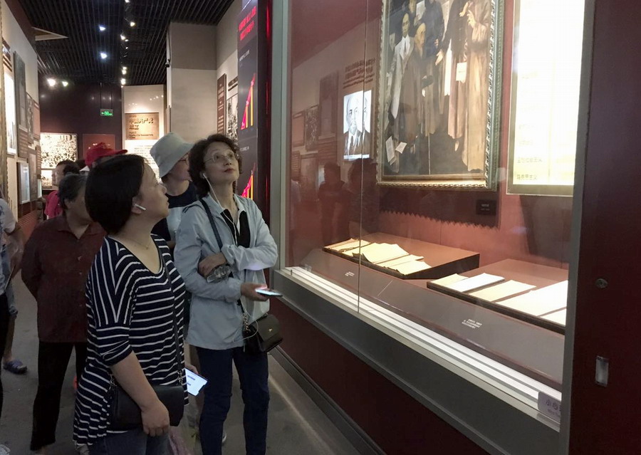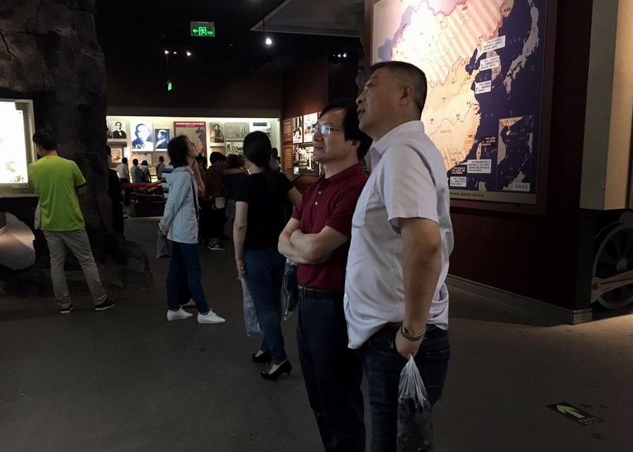 在红船精神和共产党艰辛历程等内容前,党员干部们久久驻足,用心去感受革命年代伟大艰辛的历程。