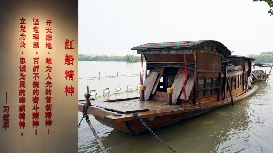 14日清晨,全体党员干部乘渡船来到湖心岛,参观中共一大会址。