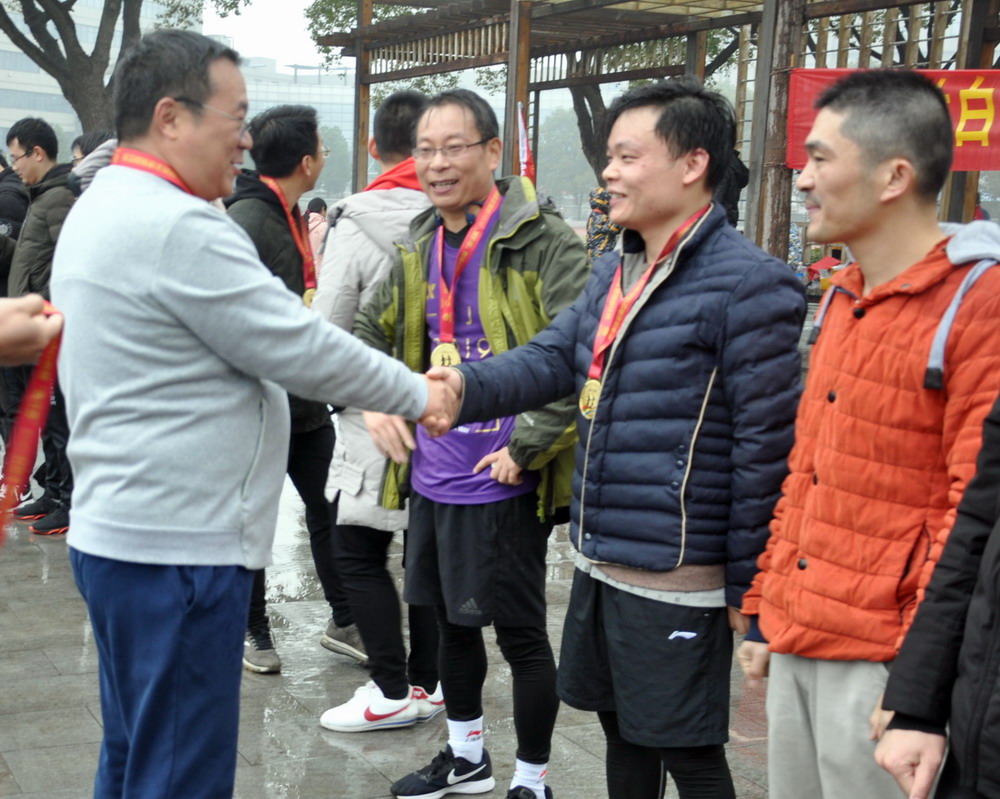 上午10时整,殷总宣布迎新年健身跑正式开跑,并亲自参与其中、圆满完赛。