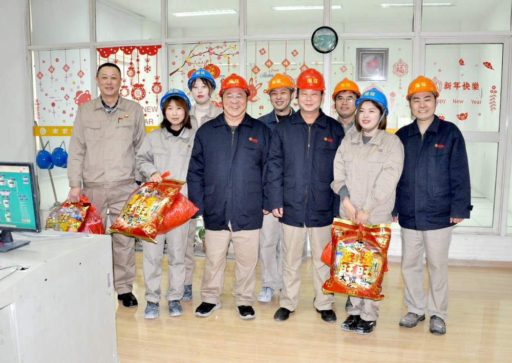 南钛公司总经理殷红忠率副总经理高岭、以及各部门值班干部深入生产现场,看望慰问节日期间仍然坚守岗位的广大员工,给员工们拜年,并向他们致以节日的问候和新春的祝福。
