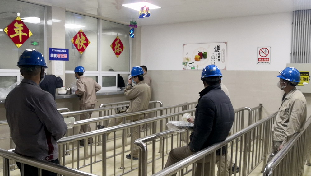 为降低员工聚集和交叉感染风险,公司在入厂环节严格把控,对入厂员工进行逐一体温检测,并临时停用指纹考勤、二道门面部识别通行等设施。在员工食堂供餐方面,公司为员工配备了封闭式餐具,采用分时打餐、错时用餐、分散就餐的方式,有效降低了食堂就餐人员密度和交叉感染的风险。
