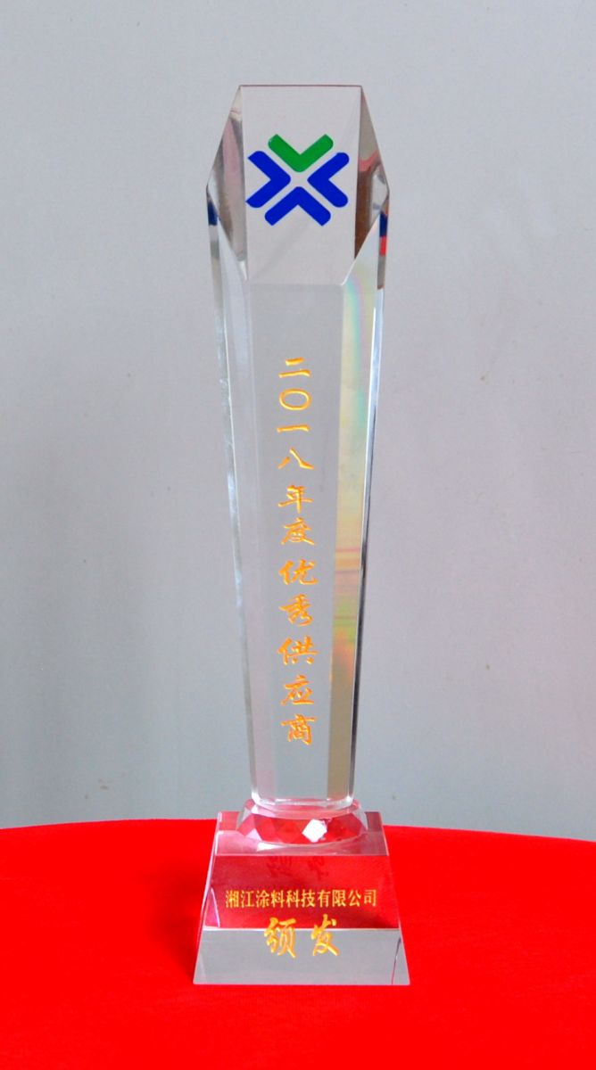 荣获湘江涂料科技钛白粉类“2018年度优秀供应商”奖杯;