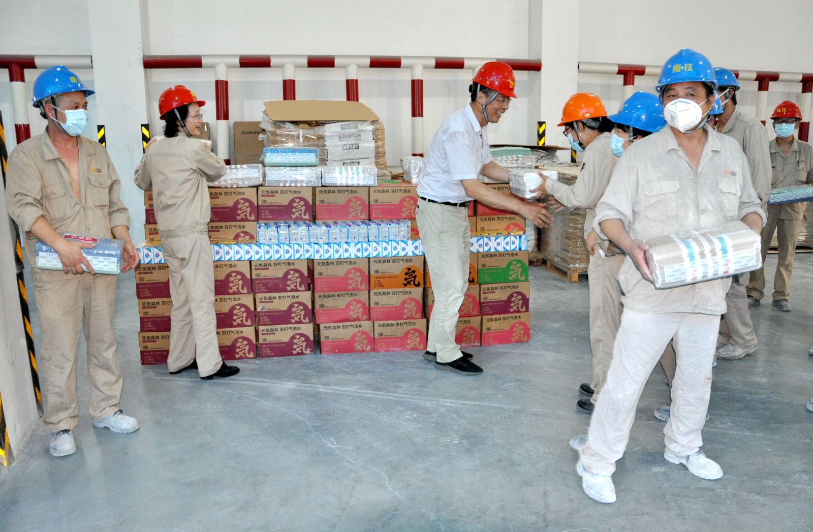 随后,周主席为坚守在酷暑高温下的一线员工代表发放了饮料、毛巾、香皂等防暑降温慰问品,并叮嘱大家一定要注意安全生产,谨防高温中暑,确保身体健康,进一步掀起战高温、保安全、促生产的热潮,为企业发展争做贡献。