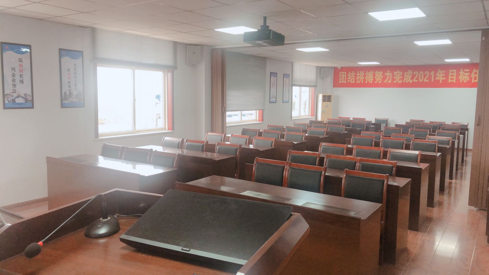 针对我公司培训及会务设施严重不足的现状,为公司会务及培训提供功能齐全的会务场所,在公司相关领导的关心指导下,由行政人事部牵头设计实施,对位于调度楼四楼办公室进行改造升级。经过两个多月的紧张施工与设施安装调试,该多功能室于2020年11月底顺利完工,并投入使用。多功能室目前配备了31台台式电脑、投影设备、音响外放设备等办公与会务设备,为公司后续线上线下培训、考试测评及各类会议提供了良好的平台。