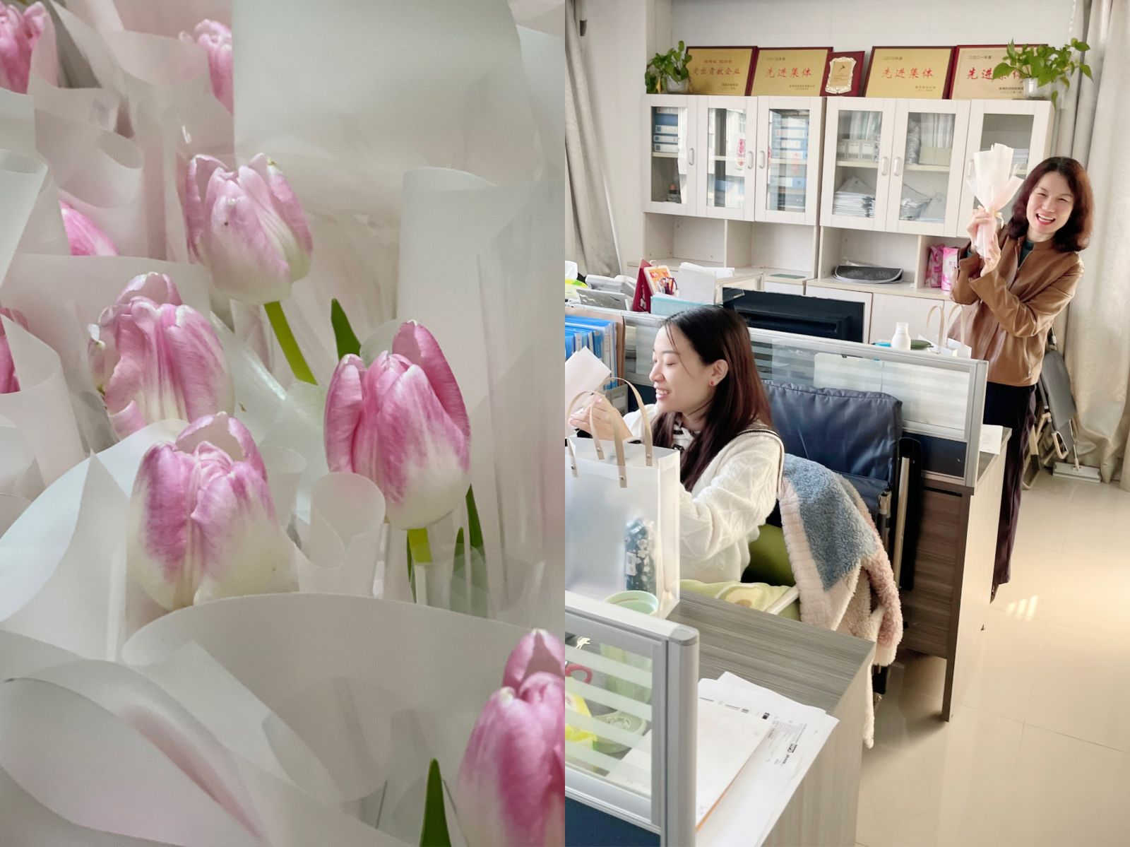 8日上午,工会主席杨文娟、女工委员会主任刘秀云前往公司各岗位,分发鲜花礼袋,代表公司向大家送去最诚挚的节日祝福。小小礼袋虽轻,蕴含情意深重。