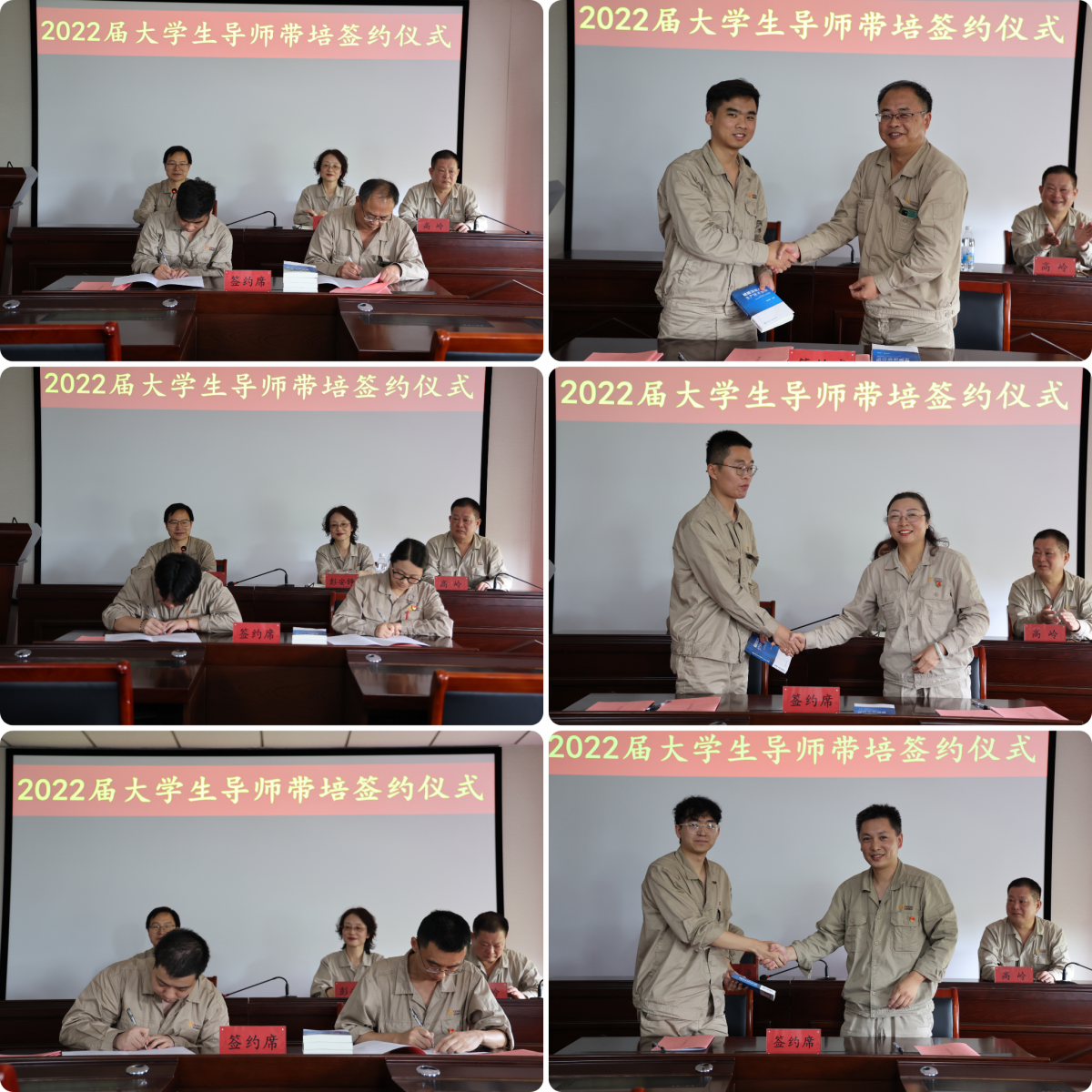 座谈会结束后,公司为新进大学生员工举办了导师带培的签约仪式,由分管领导及各部门负责人作为第一带培导师和责任人与新进大学生员工签订了为期一年的带培协议,约定带培期间内对大学生员工的培养责任义务和实施计划。行政人事部将根据带培协议,认真推进导师带培制的贯彻实施,助力大学生员工更好的成长。