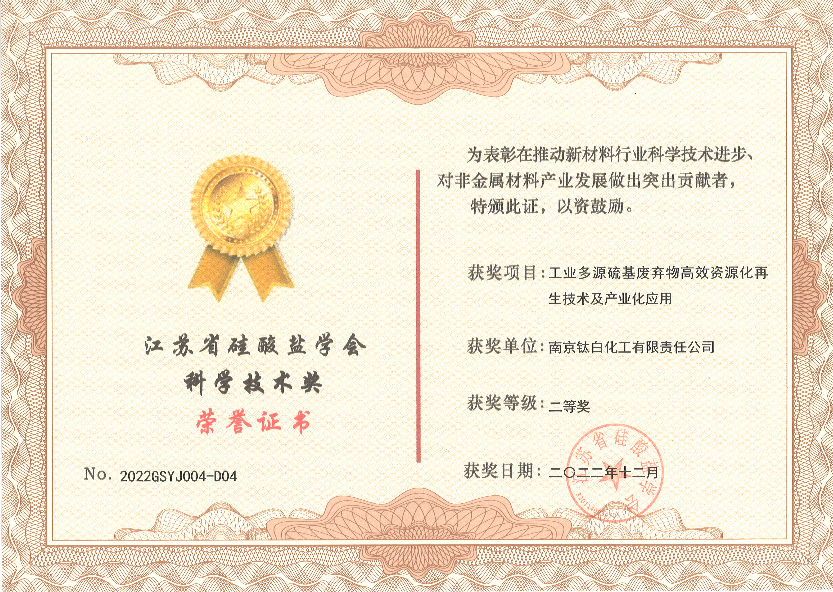 我司与生态环境部南京环科所、南京工业大学等单位联合申报的“工业多源硫基废弃物高效资源化再生技术及产业化应用”项目获得二等奖。本项目主要针对江苏省排放量最多的三种工业副产石膏—脱硫石膏、磷石膏及钛石膏,在项目调研和风险评估的基础上,研究其预处理改性和资源化利用的方式方法和途径,为副产石膏的预处理改性和资源化利用提供一条经济、可行的绿色共性技术,打通资源化利用产业链,促进企业提高副产石膏利用率、提高企业经济效益;此外,通过对副产石膏的综合利用,可以大幅度降低副产石膏堆存及处置的环境风险,为主管部门提供预处理改性及资源化利用的技术支撑。
