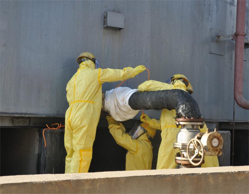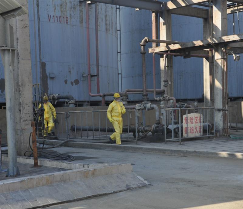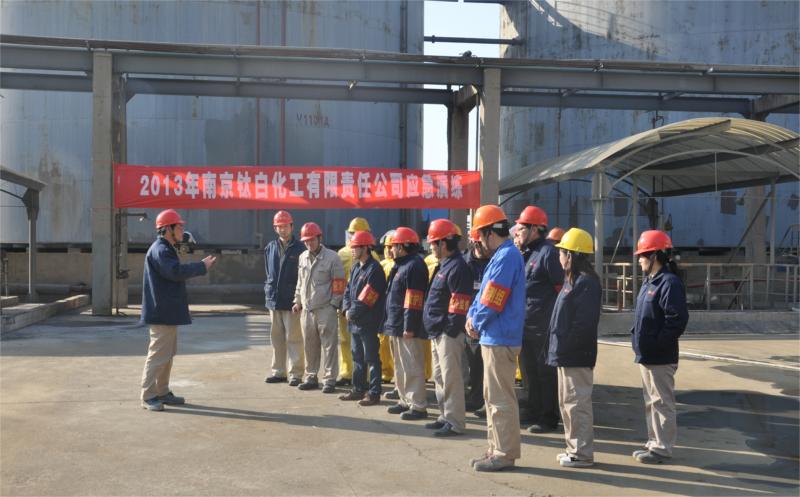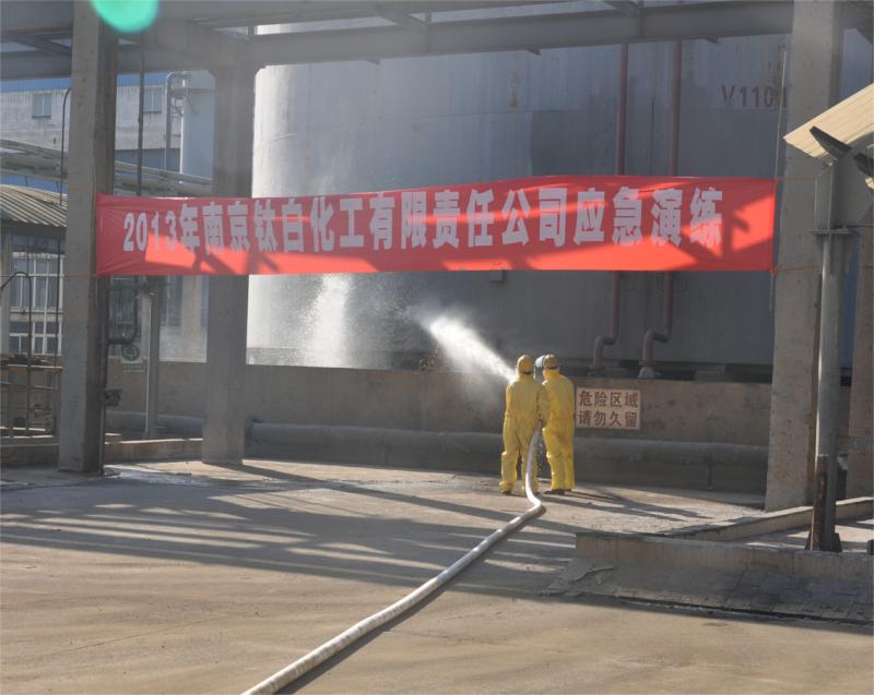 2013年12月27日下午14:00,钛白公司成功组织了一场硫酸泄漏事故应急演练。演练事故假设为硫酸罐区V1101A根部阀门泄漏。