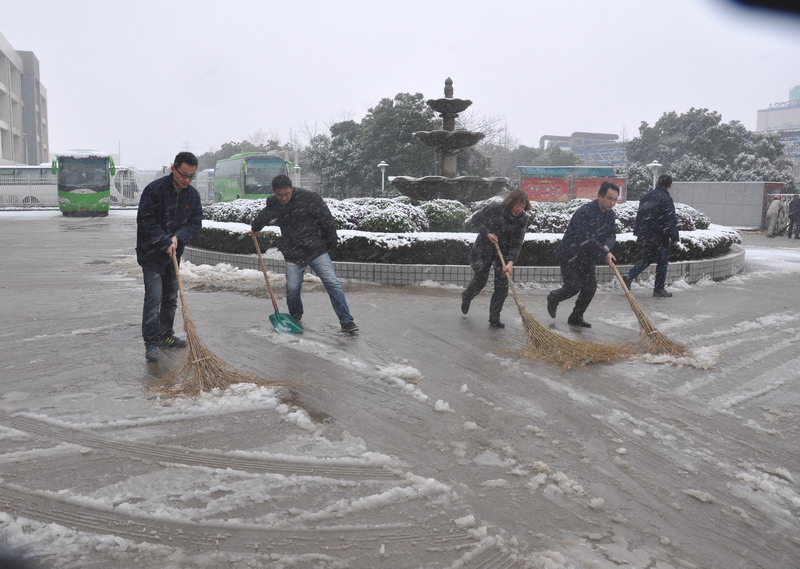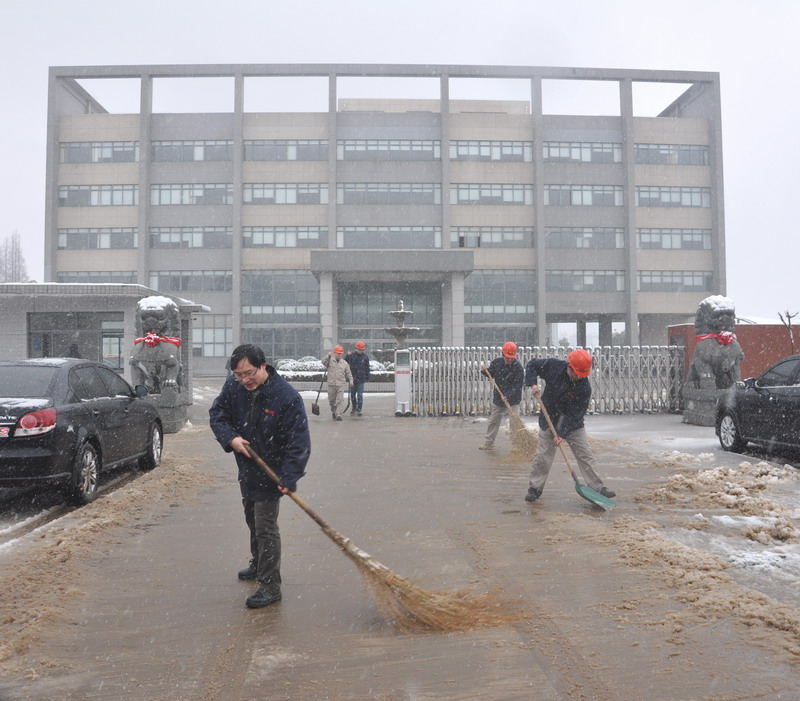 雪情就是命令,为了及时清除积雪,保证厂区主干道、门前道路畅通以及行人、车辆安全,次日清晨一上班,公司副总经理徐长海就带领相关部门干部及员工展开了清扫积雪活动。同志们顶风冒雪,不畏严寒,许多人的手和脸被冻得通红,然而,这一切丝毫没有影响大家的劳动热情和工作效率,同志们团结协作、井然有序,扫的扫、铲的铲、推的推,干得热火朝天,形成了一幅“汗水让冰雪消融”的动人场景。仅仅经过二十多分钟的奋战,厂区主干道及门前道路积雪就被打扫得干干净净,有效地确保了广大员工及车辆的出行安全。