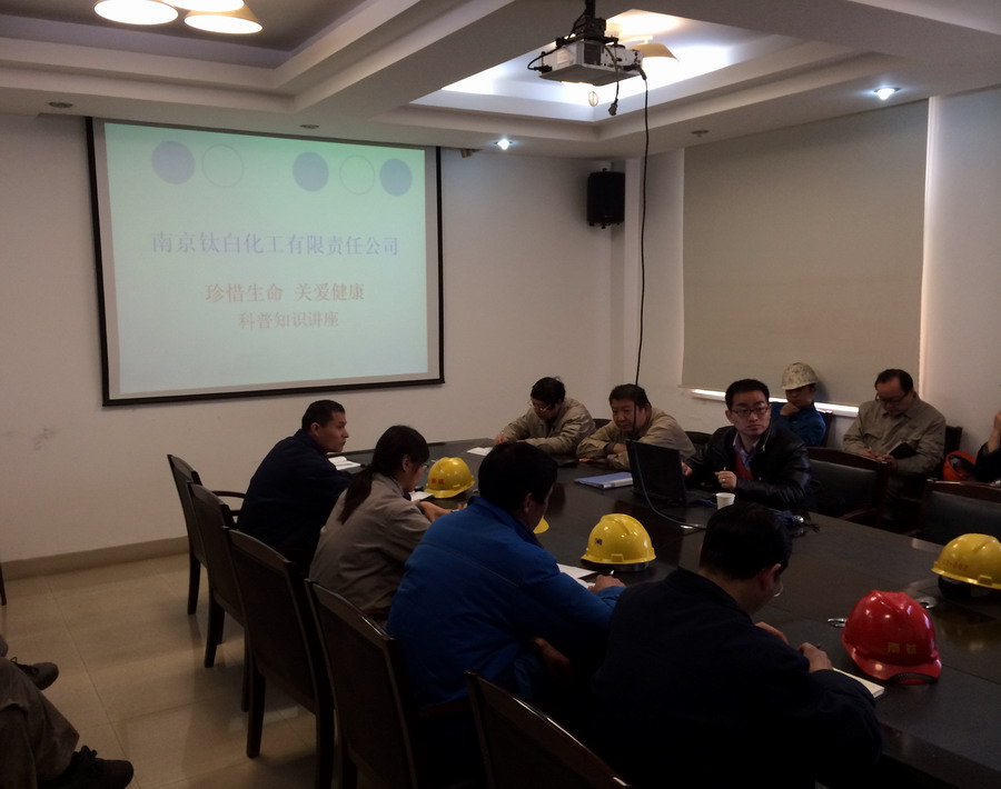 为贯彻“安全第一,预防为主”方针,提高员工在突发事件中的自救、互救意识和能力,钛白公司于近期举办了“珍惜生命,关爱健康”科普知识讲座,公司各部门、车间安全员及员工代表到会聆听了讲座。