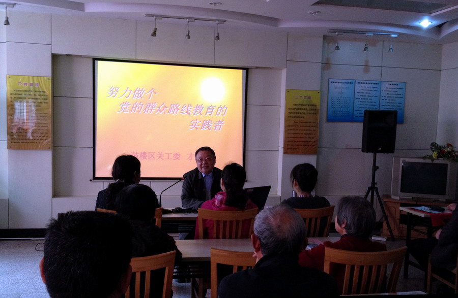 本次培训由鼓楼区讲师团成员、原二十九中教师才春祥主讲。才老师分别从党的群众路线是怎样产生和发展的,什么是党的群众路线,为什么要继续开展党的群众路线教育实践活动,以及应当如何实践党的群众路线等四个方面进行了详细阐述,给新党员上了一堂精彩的党课。才老师指出,作为一名基层普通党员,既是党的群众路线的执行者和实践者,又是群众路线的评判者,更需要认真学习、主动实践、评判干部、共同提高,这才是一个共产党员应有的作风和素质。