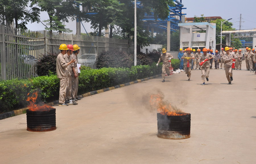为了进一步强化公司员工的消防安全教育,提高抗击突发事件的应变能力,正确使用灭火器材以及逃生的应急方法等,钛白公司根据2014年度“安全生产月”活动计划安排,于6月27日下午在生产区组织开展了一场消防应急演练活动。此次消防演练由公司安全环保部、工会等联合举办,一车间、二车间、四车间、物流中心、质检中心、电仪中心及驻厂施工单位等9个部门约30余人参加。
