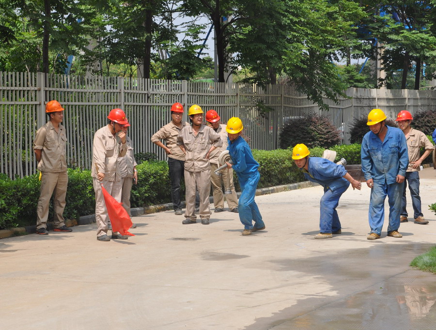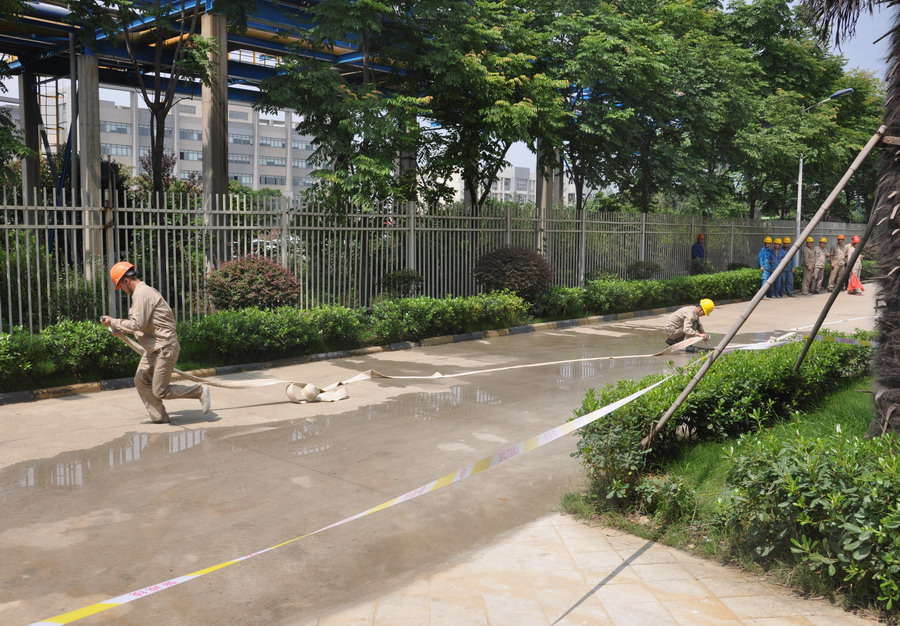 演练开始之前,首先进行了简短的开场仪式,公司总经理助理姜总明确了此次活动的目的和重要意义,并勉励大家积极参与,踊跃表现,安全第一;安环部安全员夏康现场进行了消防速成培训,具体讲解了灭火器材的种类、性能、适应火种及其操作要领,并对消防器材的正确使用进行了示范。开场仪式结束后,按照预定程序,9个部门先后进行了干粉灭火、快接消防水带及现场人员疏散等演练比赛。