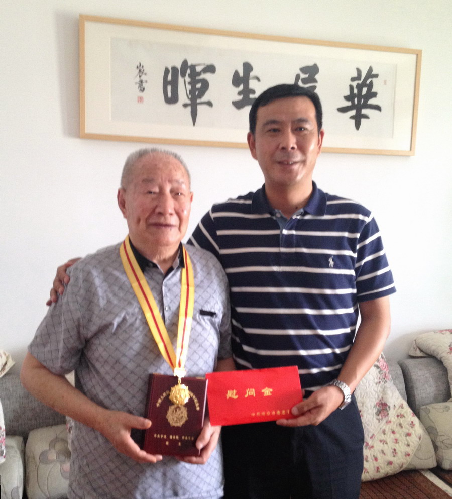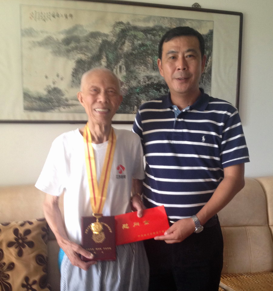 在纪念抗战胜利70周年之际,9月1日上午,市委老干部局余局长在钛白公司工会主席陪同下,上门看望慰问钛白公司抗战离休老干部朱钜卿、宋玉秀两位老同志,为他们颁发抗日战争胜利70周年纪念章和慰问金,并向他们致以亲切问候和崇高敬意。