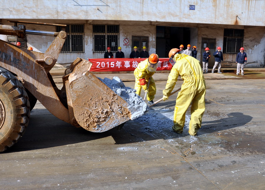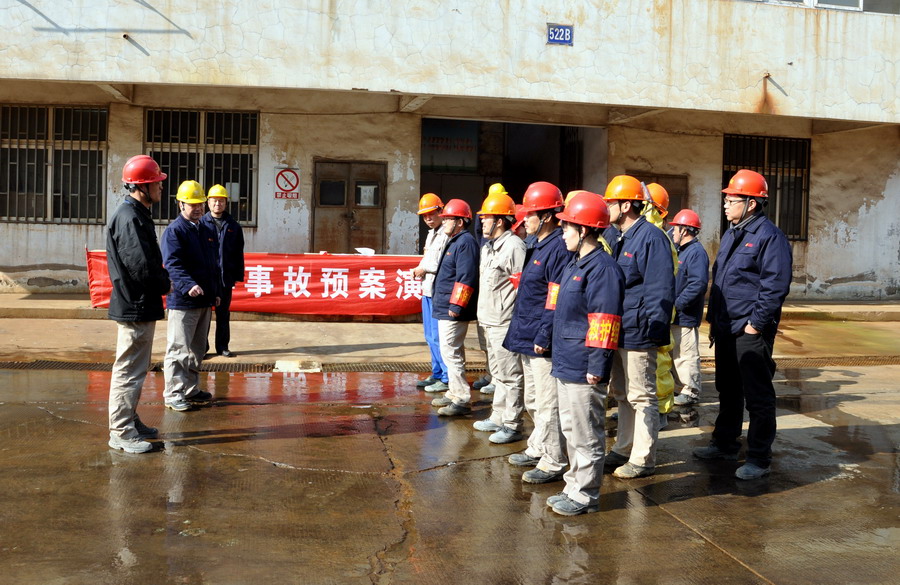 2015年11月27日上午10:30,南京钛白公司成功组织了一场磷酸泄漏事故应急处理演练。