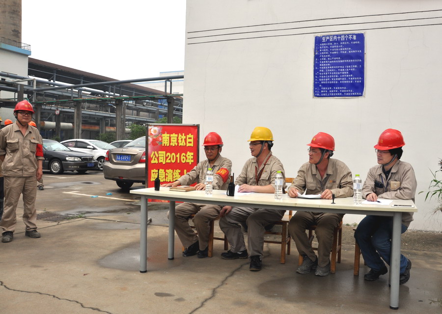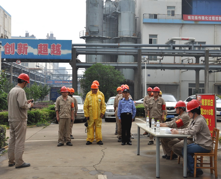为了进一步增强公司员工消防、疏散和急救等安全意识,检验公司消防设施及报警系统功能,提高员工抗击突发事件的应变能力和自我防护能力,南京钛白公司根据2016年度“安全月”活动计划安排,于6月22日上午在生产区组织开展了一场消防综合演练活动。此次演练由公司安环部主办,一车间、二车间、四车间、电仪中心及驻厂施工单位等有关单位派出代表参加演练。集团生产部领导到现场进行了观摩。